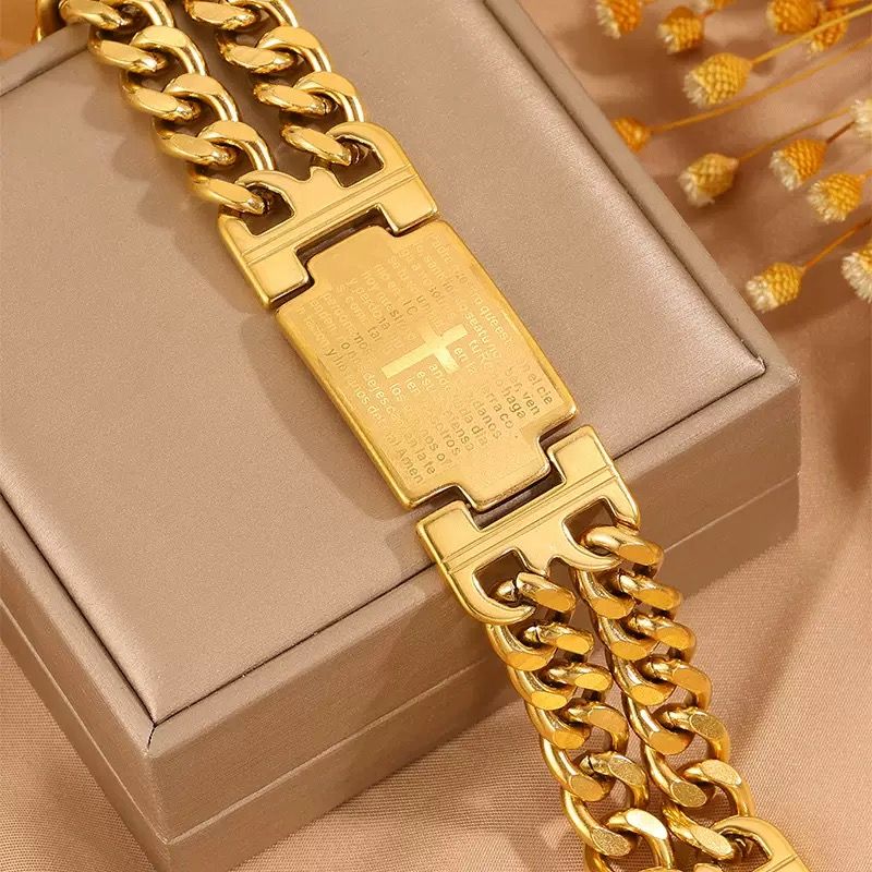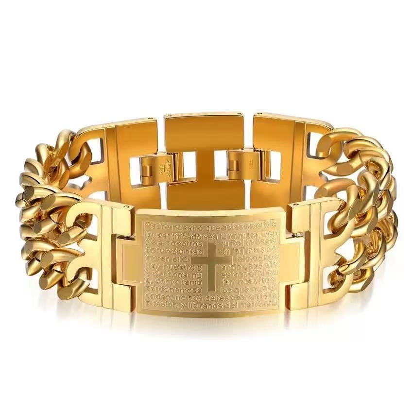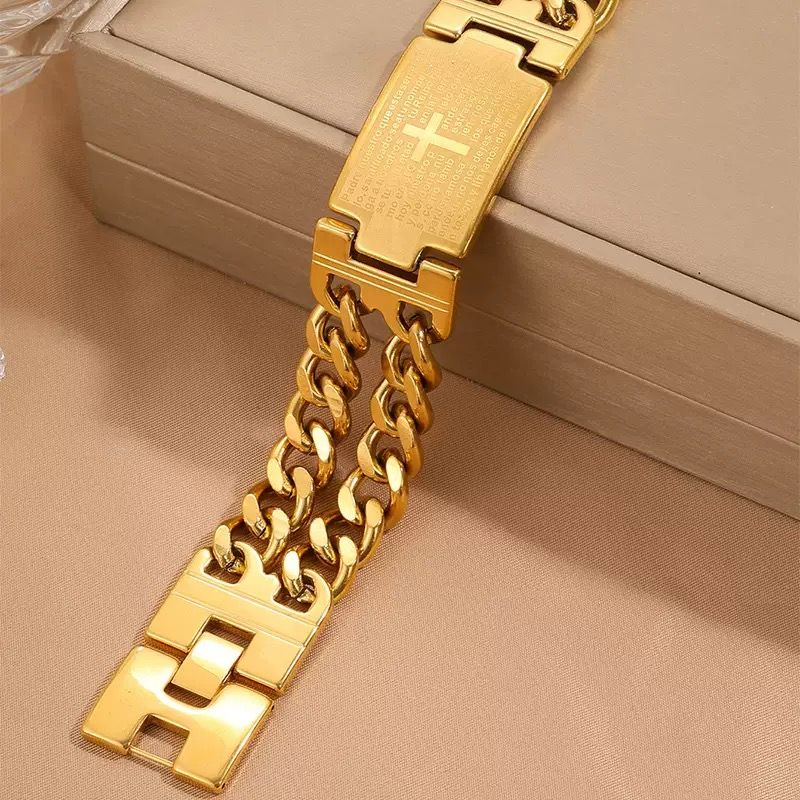 Gold Cuban Chain Bold Cross Bracelet - Premium and Versatile