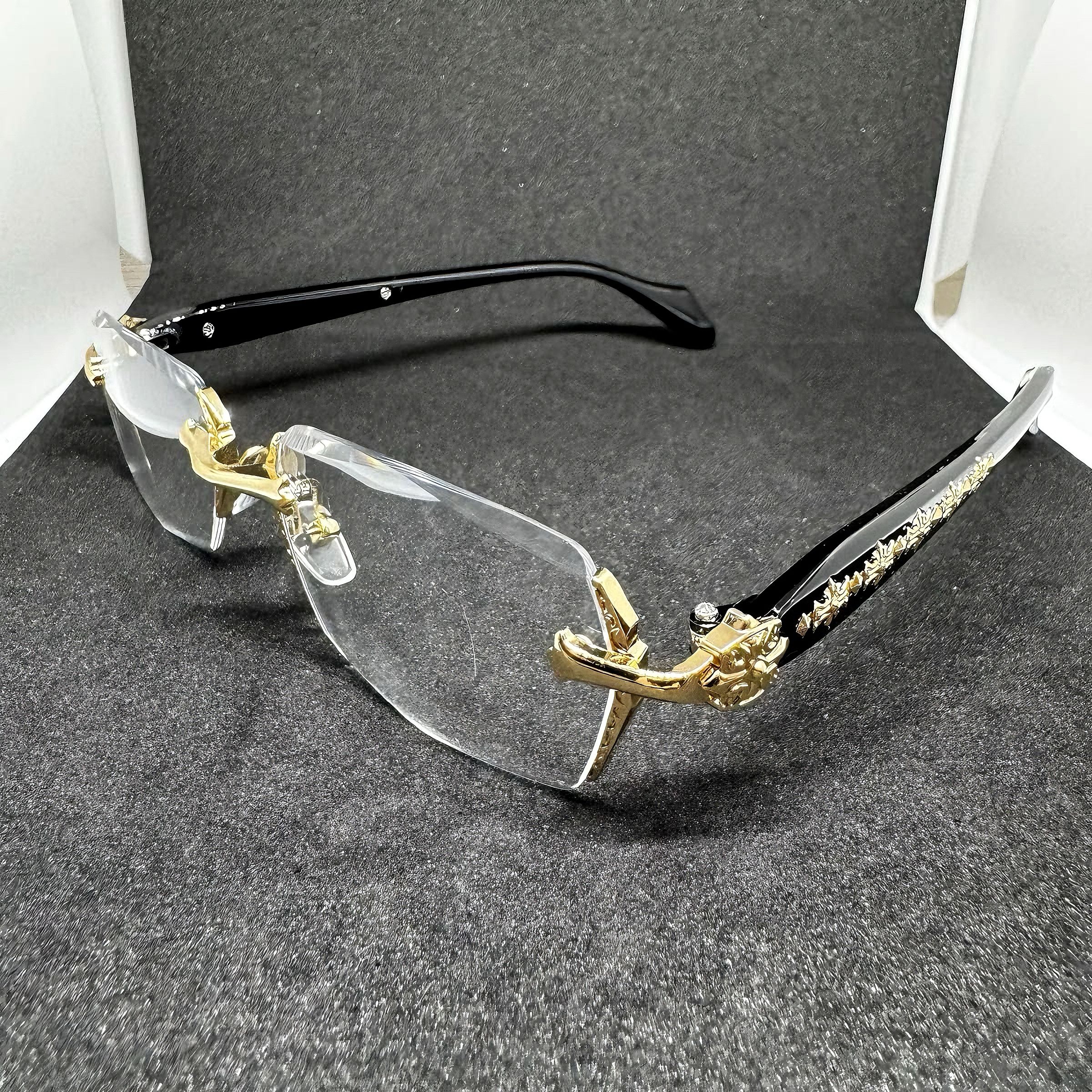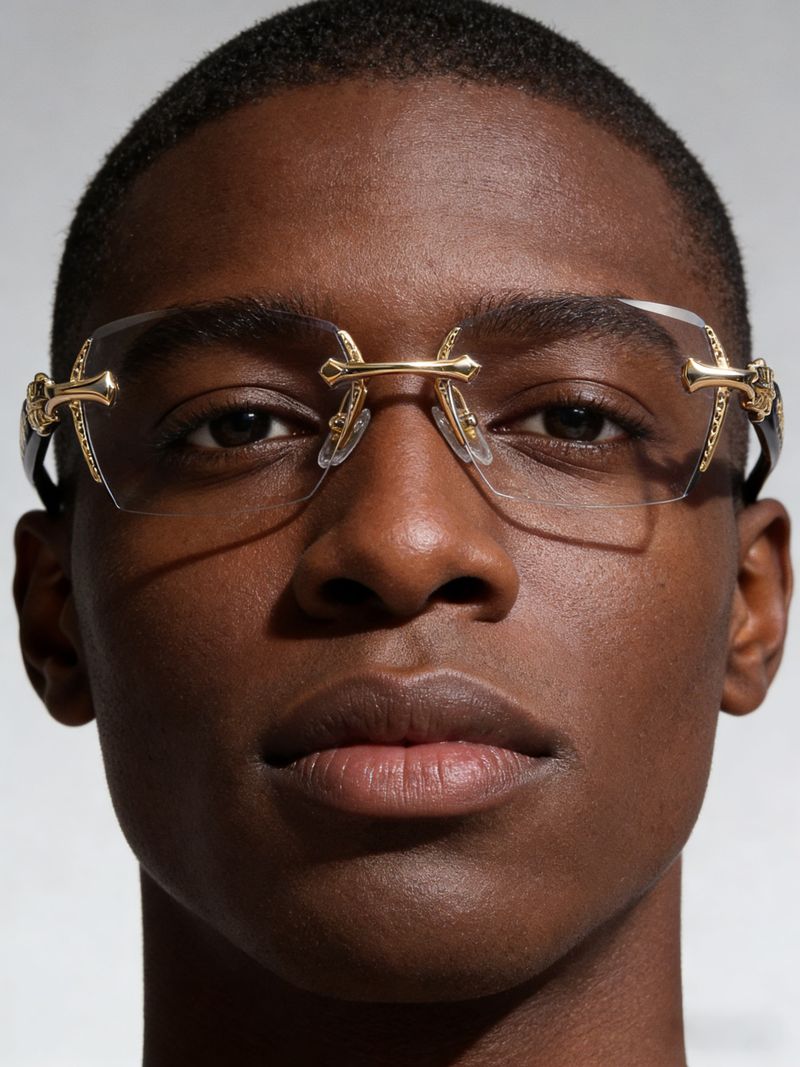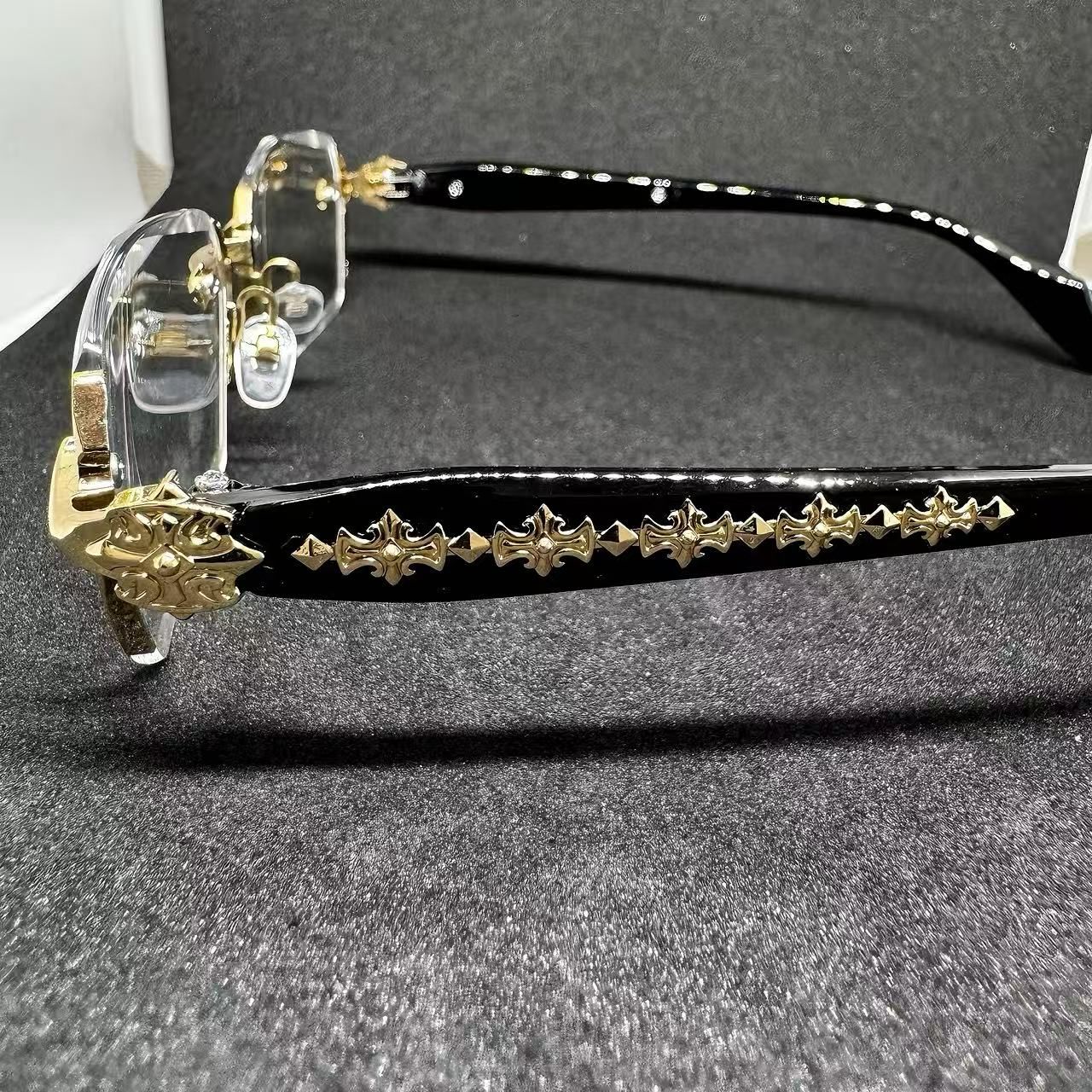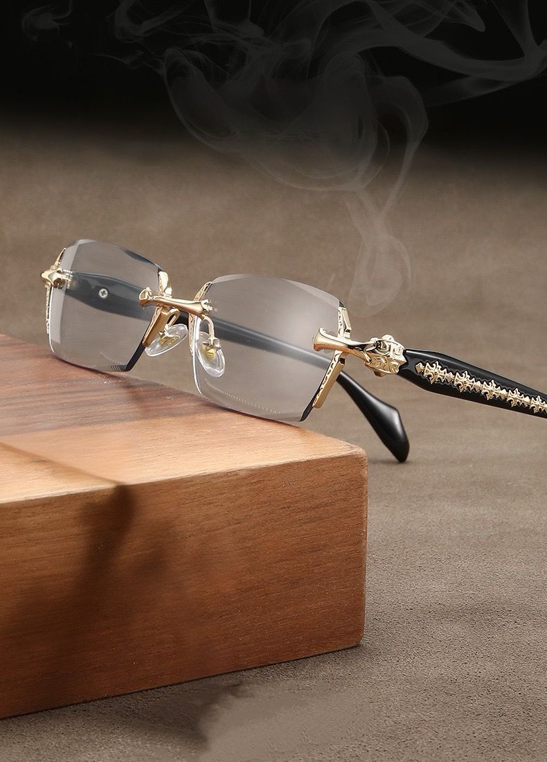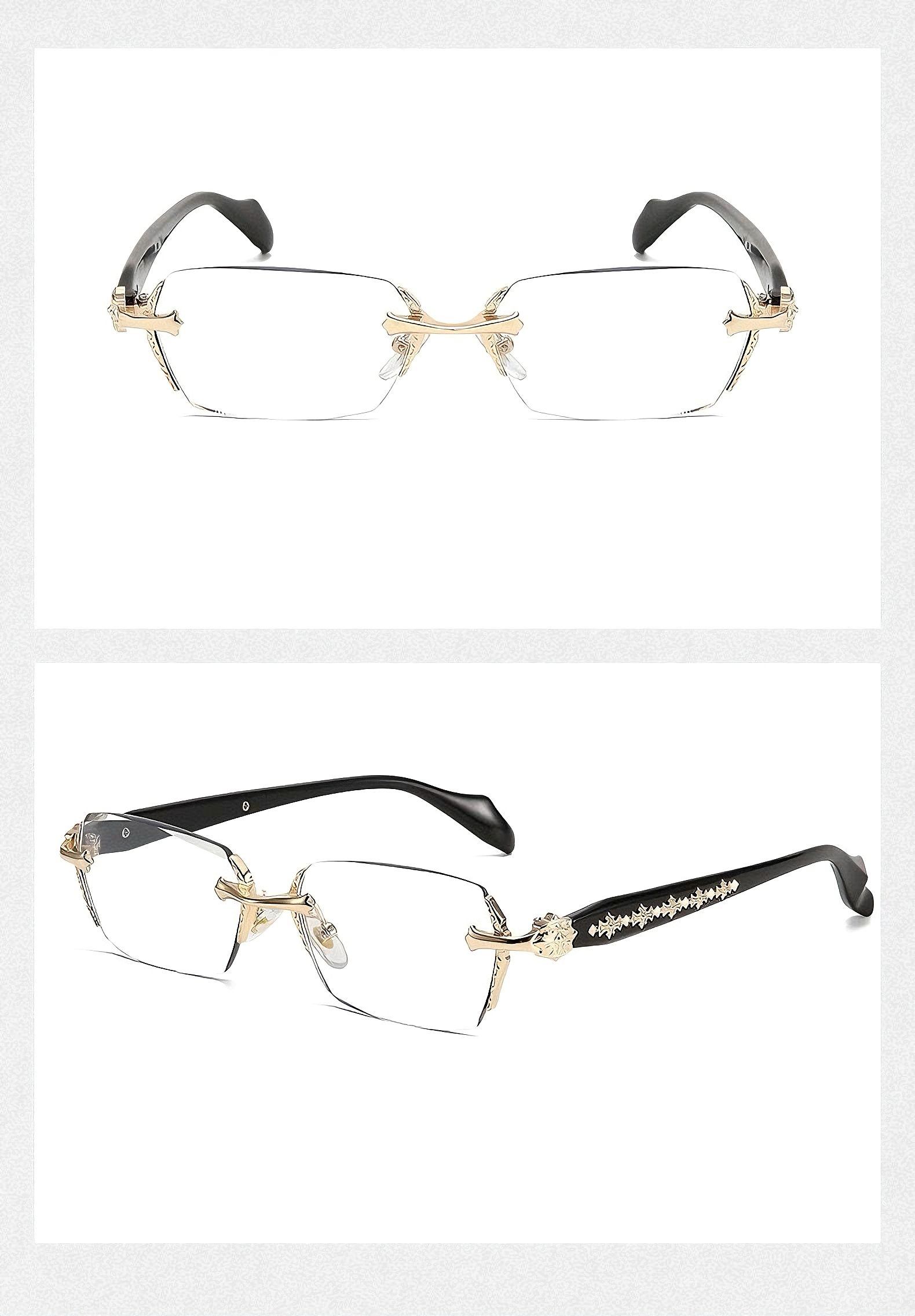 Retro-style cross-pattern gold-rimmed glasses